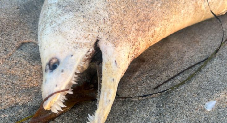 A strange sea creature that looks like something from a horror movie recently washed up on a beach in Southern California. Its creepy look was so shocking that the pictures shared on Reddit were labeled not safe for work.