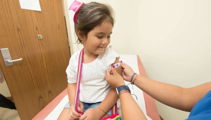 A little girl receiving a bandaid after getting vaccinated (for illustrative purposes), Photo Credit: Pexels